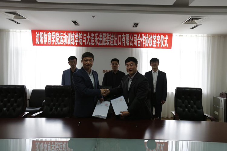 5月6日下午,运动训练学院与大连乐进服装进出口有限公司签订了该公司到2019年赞助我校足球运动装备价值90万元的赞助协议。大连乐进服装进出口有限公司董事长金海光、副董事长戚晓光一行,我校教务处处长林勇虎、运动训练学院院长于树祥、副院长于泉海、办公室负责人参加了仪式。
