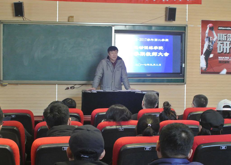 3月2日下午,运动训练学院在篮排球馆电教室召开2016-2017学年第二学期新学期教师大会,运动训练学院新一届领导班子、全体教师参加大会。