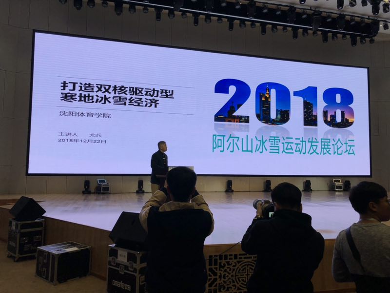 我校运动训练学院党总支书记尤兵作为专家受邀参加论坛并作了《打造双核驱动型寒地冰雪经济》的主旨演讲,演讲阐述了如何发挥冰雪运动的运动和旅游双重属性推动冰雪经济的发展。