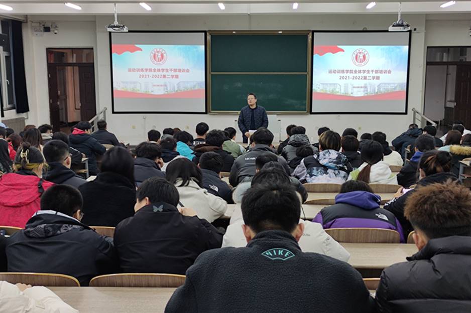 2月27日,运动训练学院召开了2021-2022第二学期全体学生干部培训会。培训会由学院党总支副书记李丁皓主讲,各年级辅导员及学院全体学生干部参加了本次培训,学生第二党支部书记、2021级辅导员孙立名主持会议。