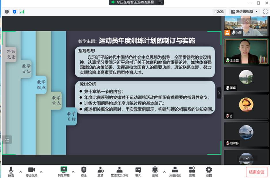 9月1日上午,运动训练学院在腾讯会议平台组织开展了运动训练学教研室新教师试讲活动,学院院长崔鲁祥教授、副院长张麟寰副教授、刘排教授及运动训练学教研室全体教师参加了活动并指导。
