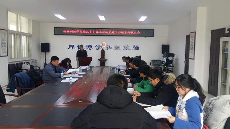 12月14日中午,运动训练学院党总支在部门会议室举行2017年度党支部书记抓党建工作述职评议大会,会议由党总支书记尤兵主持,运动训练学院领导班子、各党支部书记、支部委员参加了会议。
