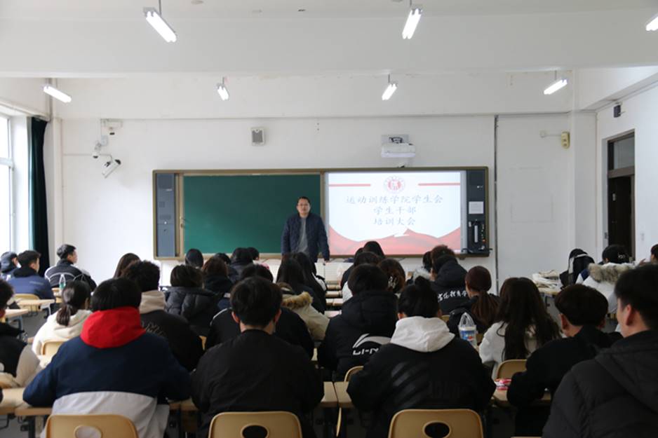 11月19日,运动训练学院团委组织开展学生干部培训会,会议由学院党总支副书记李丁皓主讲,学生会全体学生干部参加培训。
