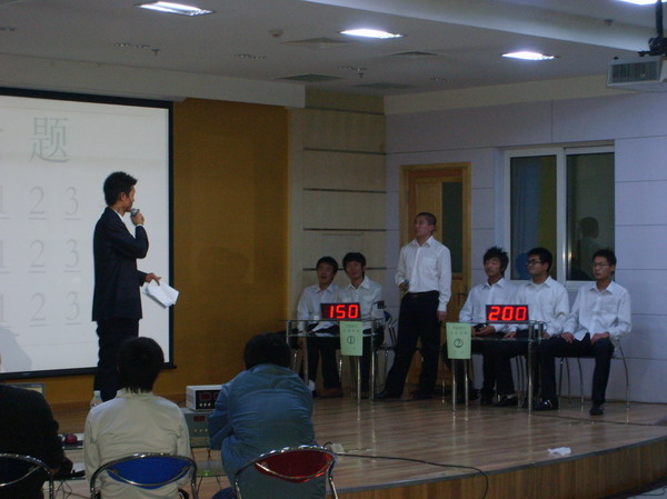 11月20日晚7点,运动训练系2006级“学风建设知识竞赛”总决赛,经过认真、充分筹备之后,在图书馆二楼报告厅正式开赛,莅临本次比赛的领导、嘉宾有运动训练系主任魏丕来教授、运动训练系办公室主任马策老师、院团委副书记高维权老师、运动训练系团总支书记李志强老师及运动训练系各位辅导员老师。本次总决赛在同学当中引起广泛关注,比赛现场人头攒动,气氛异常热烈,赛场上选手们机智、活泼、勇敢的表现,展现了我们运动训练系06级学生积极向上、追求卓越的团队精神。整场比赛精彩不断、扣人心弦,同时伴有同学们的才艺展示,更为本次总决赛增添了一丝靓色,场上掌声不断,此起彼伏。最后,在激烈的加时赛中,2班参赛队英勇顽强,用自己的聪明才智和扎实的理论基础,夺得了本次比赛的总冠军;9班、16班分别获得亚军和季军。