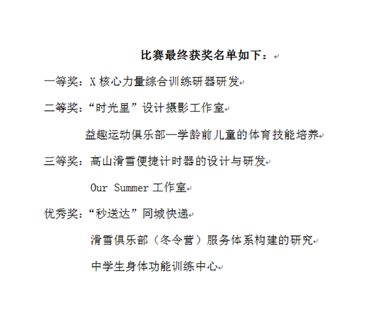 为切实贯彻“创业带动就业”政策,激发学生创业热情,4月11日下午,运动训练学院在图书馆二楼报告厅举办了2018年创新创业精品项目大赛,本次比赛评委由社科中心主任董传升、运动训练学院副院长于泉海和威仕顿健身经理李鹏程,以及动因体育经理孙熙担任。