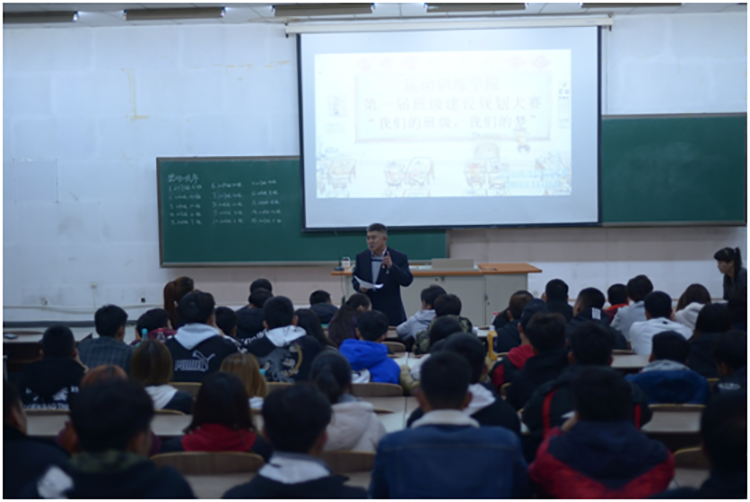 11月6日晚,运动训练学院在教学楼112教室举行第一届班级规划建设大赛的决赛。运动训练学院党总支书记尤兵、党总支副书记庞宏娜、团委书记宁辰及各年级辅导员出席本次比赛。比赛评委由管理与新闻传播学院、社会体育学院、运动人体科学学院团委书记担任。运动训练学院全体学生干部现场观看比赛。