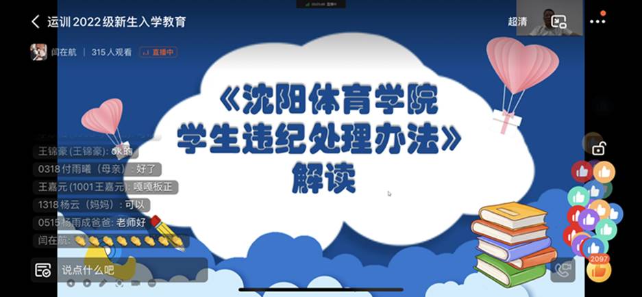 9月4日,按照党委学生工作部的工作部署,运动训练学院开展2022级新生入学教育第一课,本次入学教育采取钉钉线上多群直播的方式进行,学生和家长共同参与。运动训练学院党总支副书记李丁皓以“遵守纪律、敬畏规则,做追求卓越的新时代大学生”为题进行讲授。会议由2022级辅导员王世明主持,闫在航负责考勤。